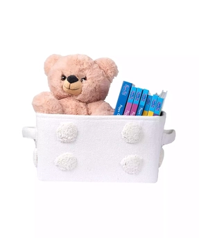 PomPom Small Rectangular Beige Toy Storage Basket PomPom Small Rectangular Beige Toy Storage Basket