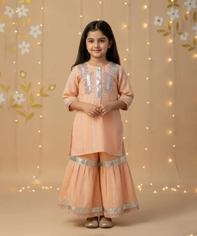| (in Inches) | Chest Round | Waist Round | Hip Round | Sleeves length | Shoulder to Knee Length | Sharara Length | ||