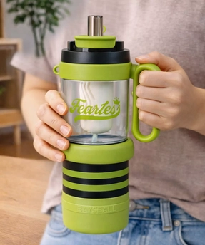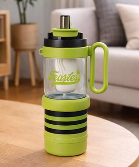 Green Black 4 In One Water Bottle , Infuser & Mini Snack Box For Teens And Adults, 1000Ml