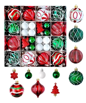 46Pcs Joy Swirls Red, Green & White Christmas Tree Balls And Xmas Tree Decoration Set