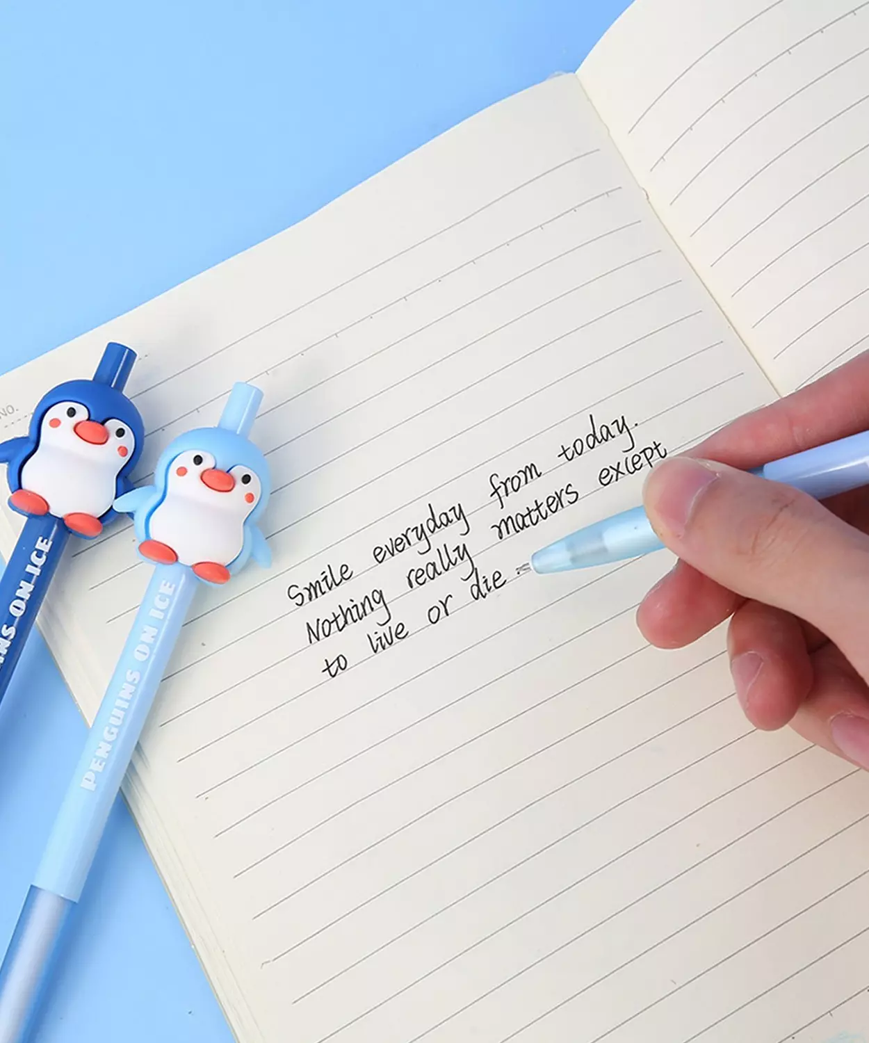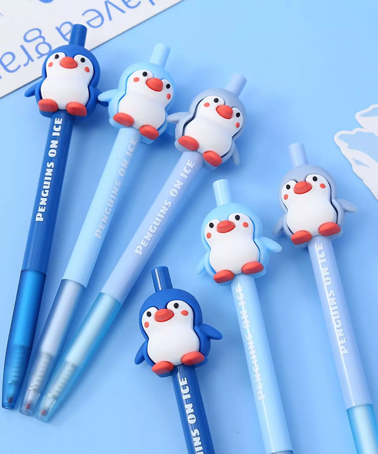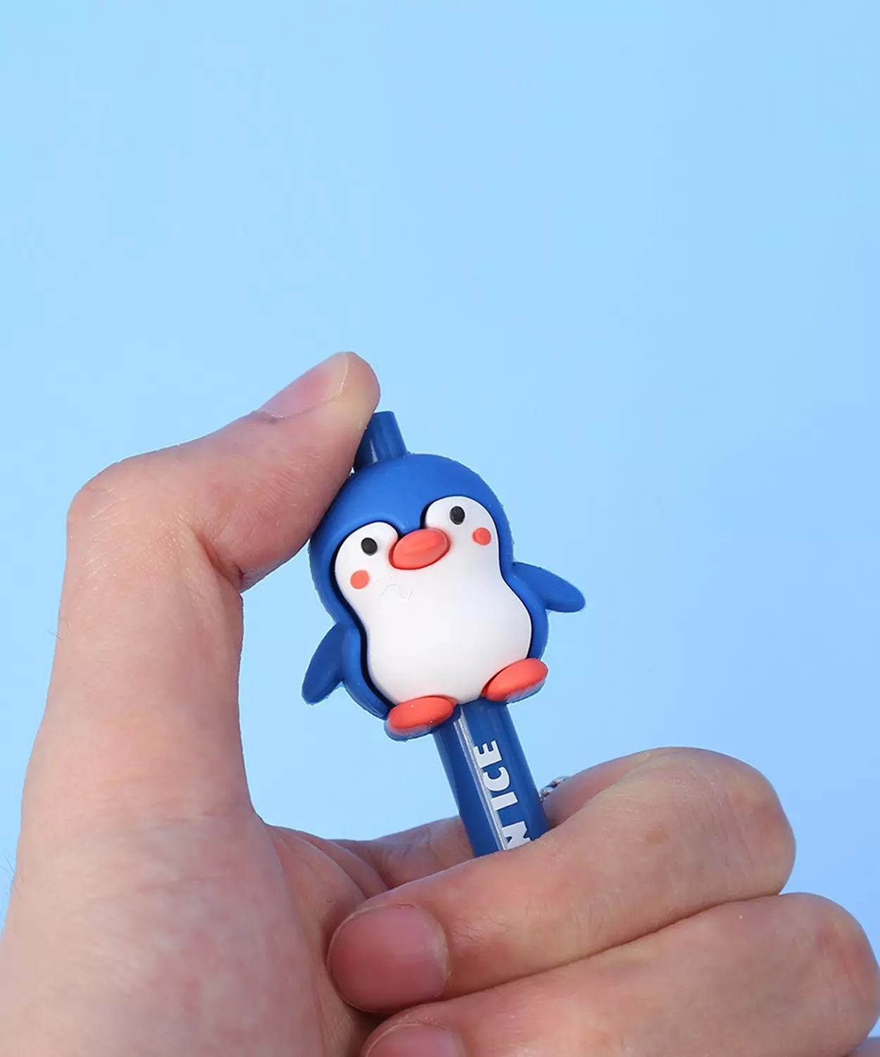 Cute penguin themed click pen.