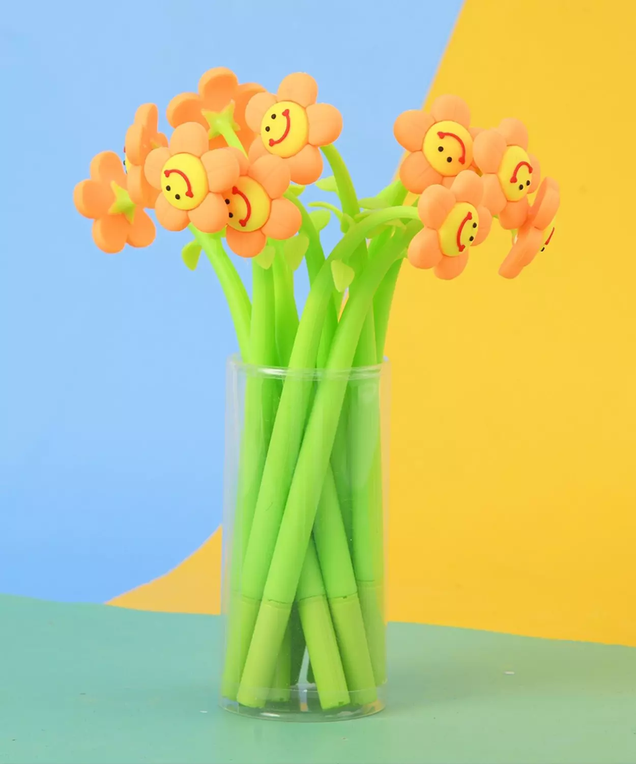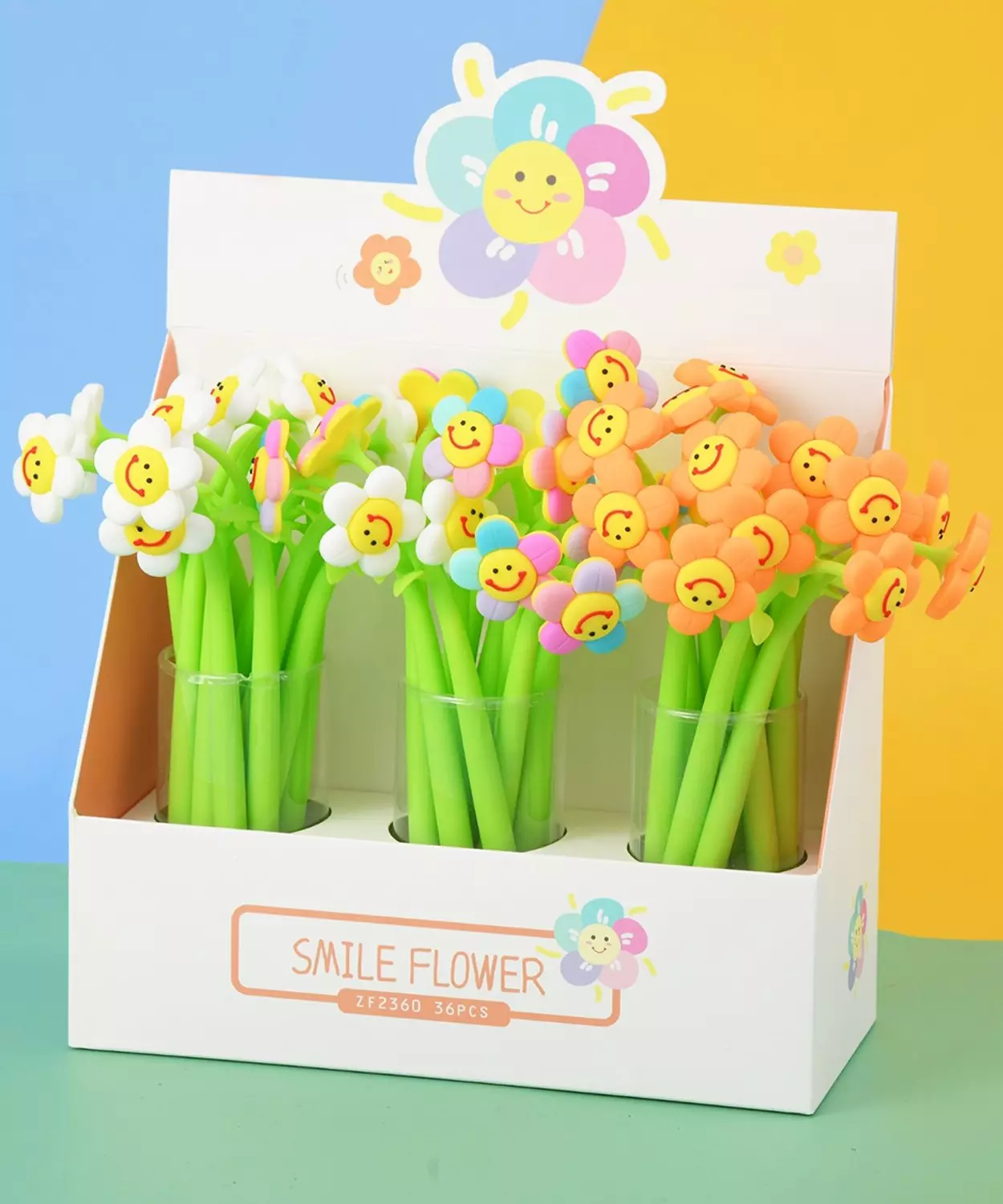 Cute flowers in multi colour with a smiley face.