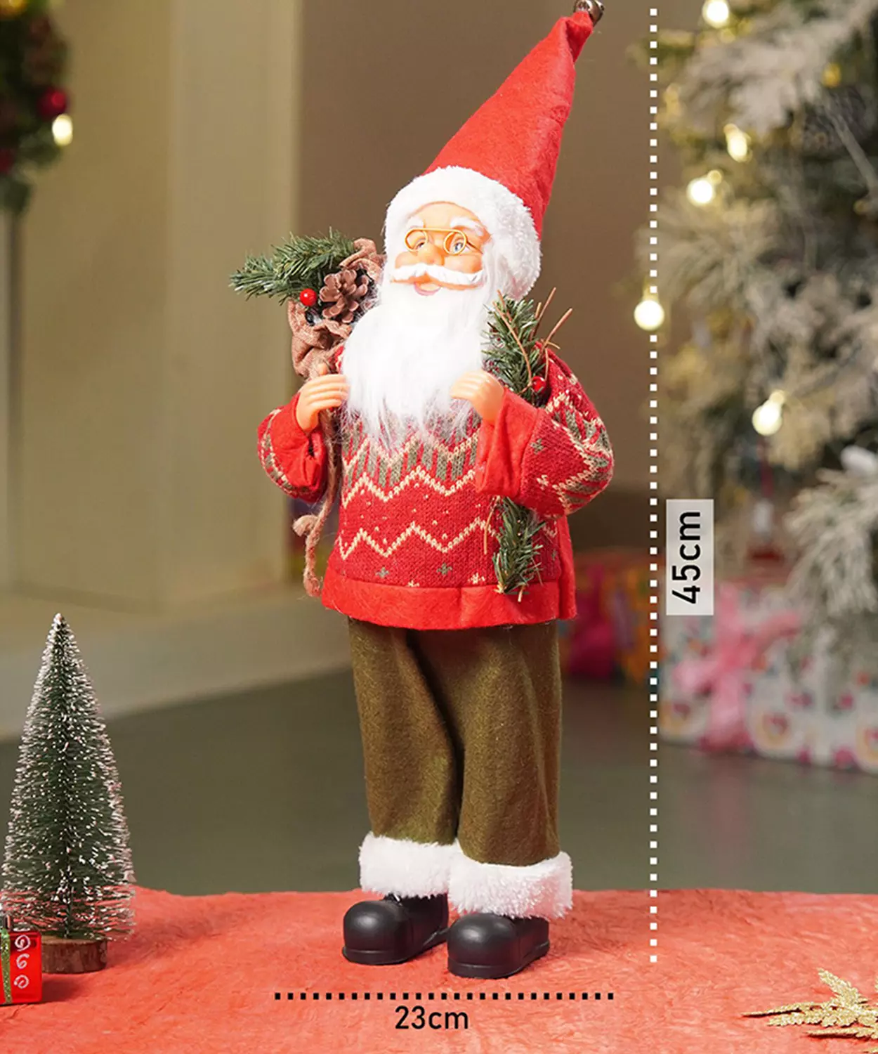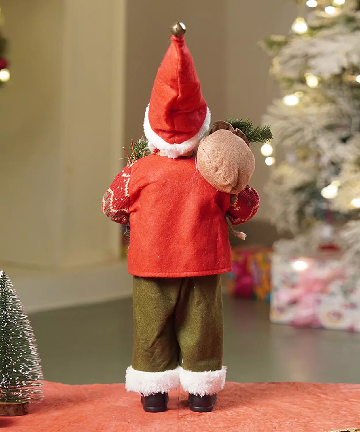 Mini Red Tree With Santa Sack Colorful Led Light Dome With Music Christmas Table Decor