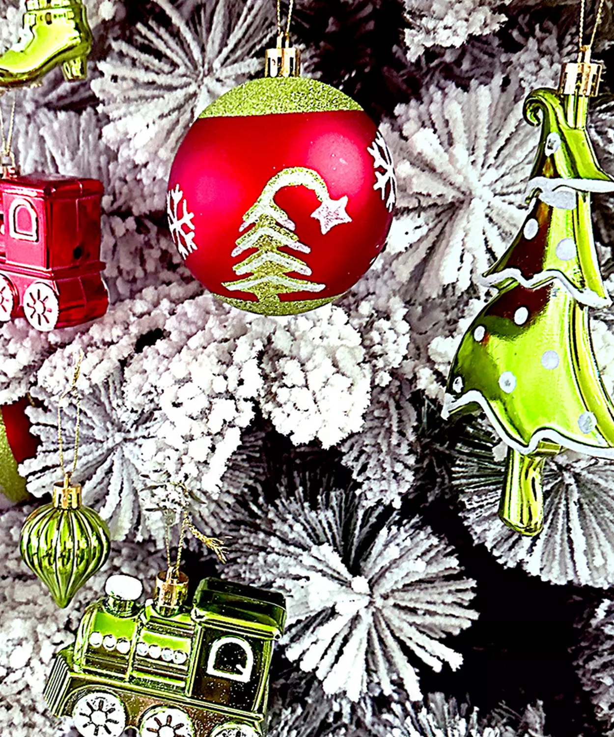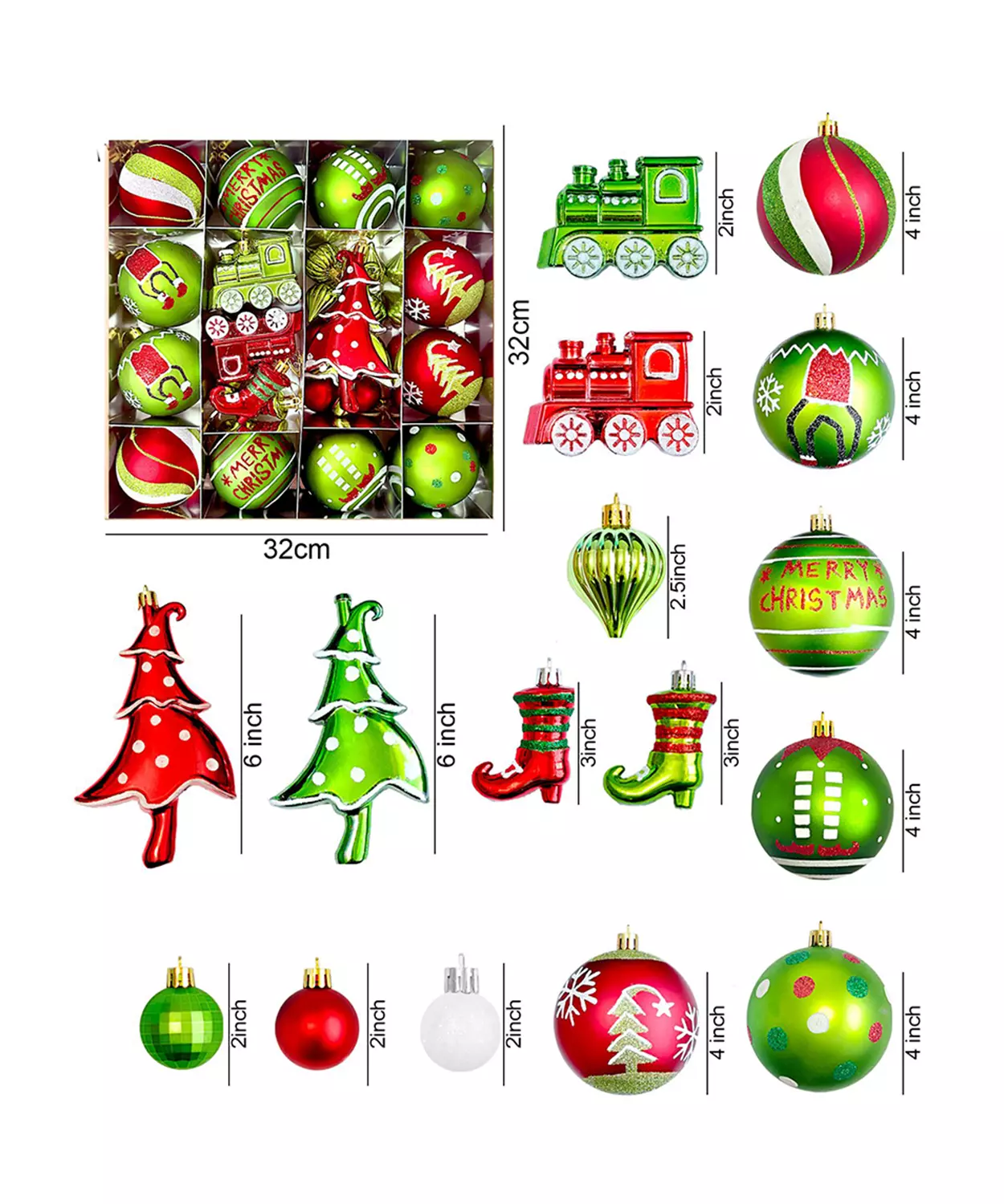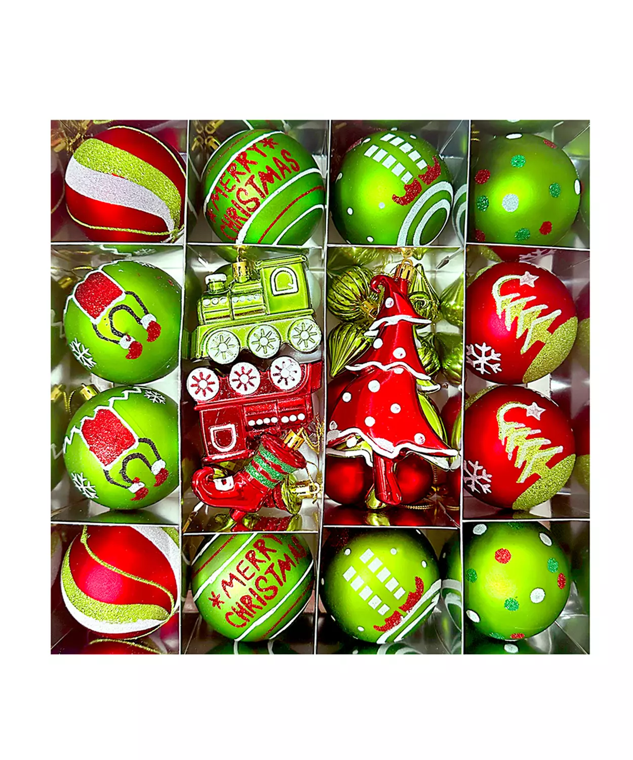 78Pcs Green & Red Big Size Mittens Themed Assorted Christmas Tree Balls & Xmas Decoration Set
