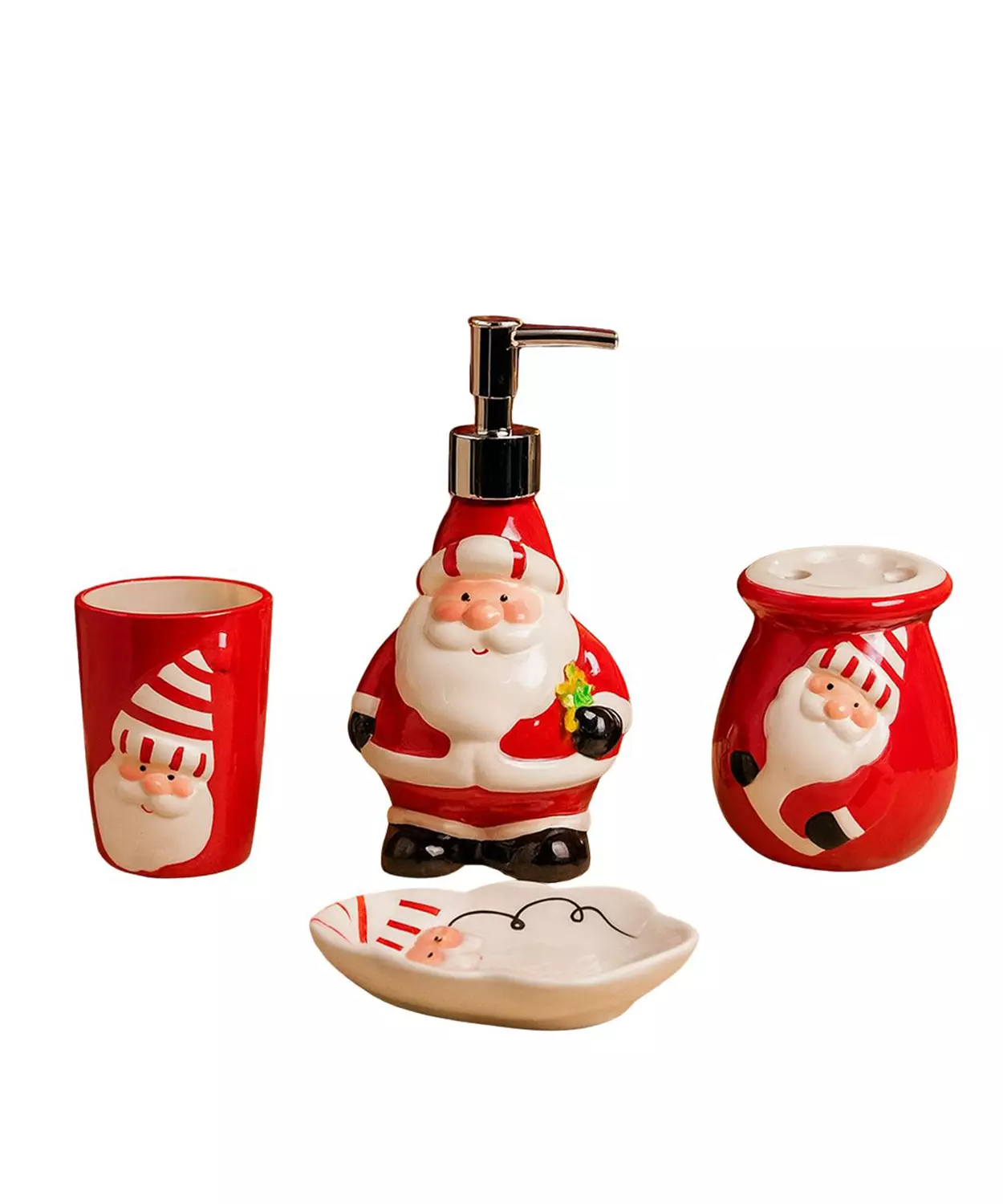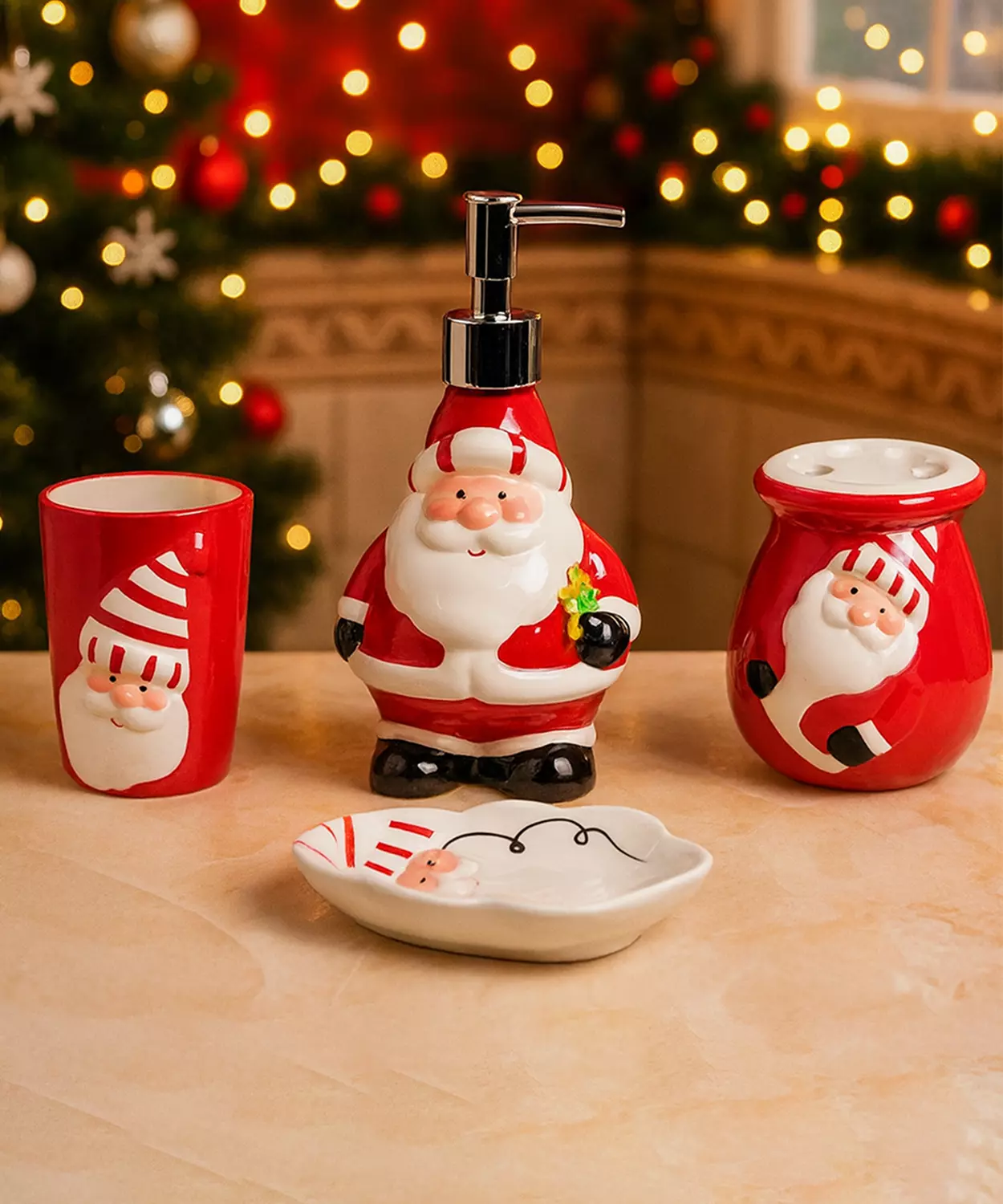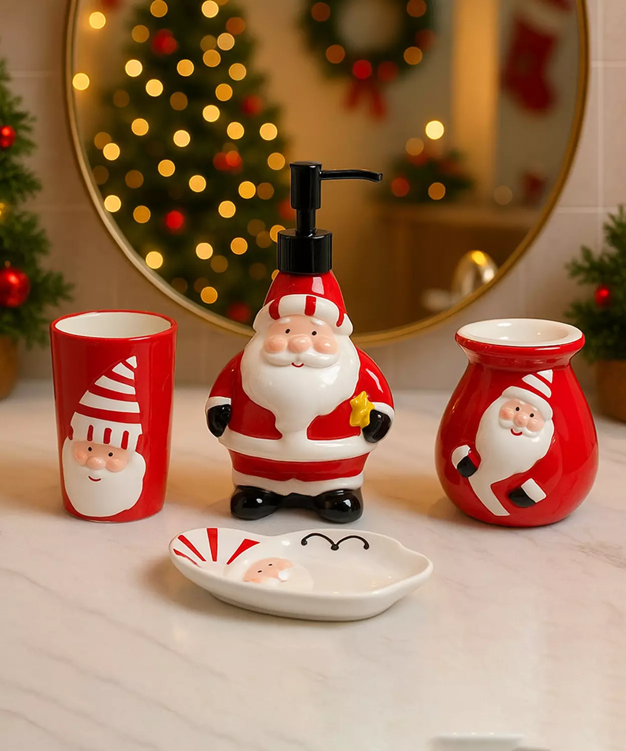 4 Pcs Christmas Bathroom Accessories, Soap Dispenser,Toothbrush Holder, Tumbler & Soap Dish