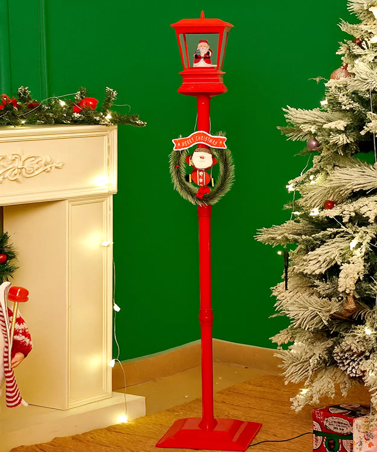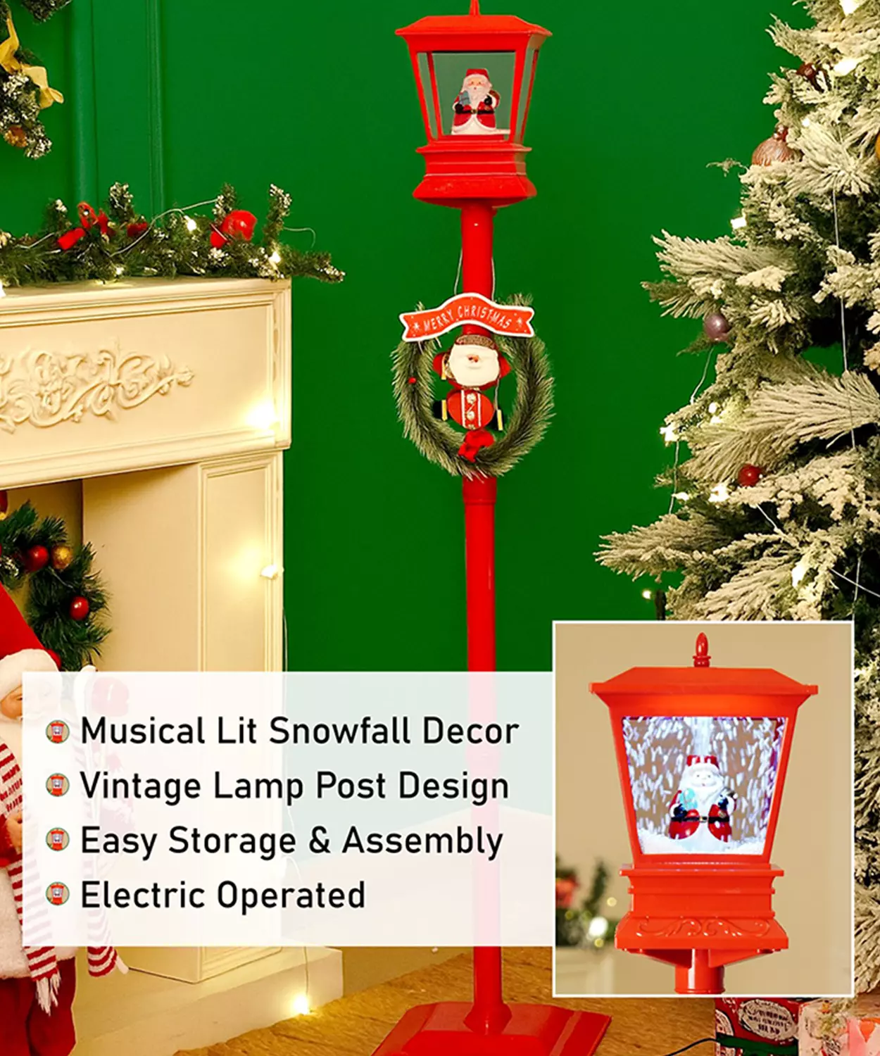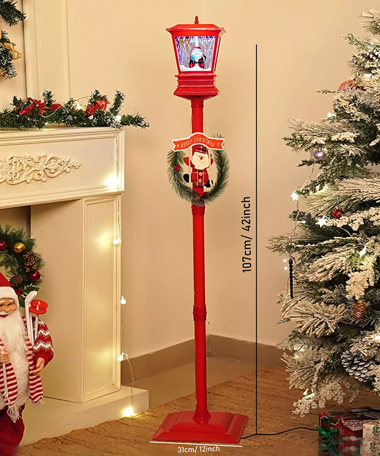 Mini Red Tree With Santa Sack Colorful Led Light Dome With Music Christmas Table Decor
