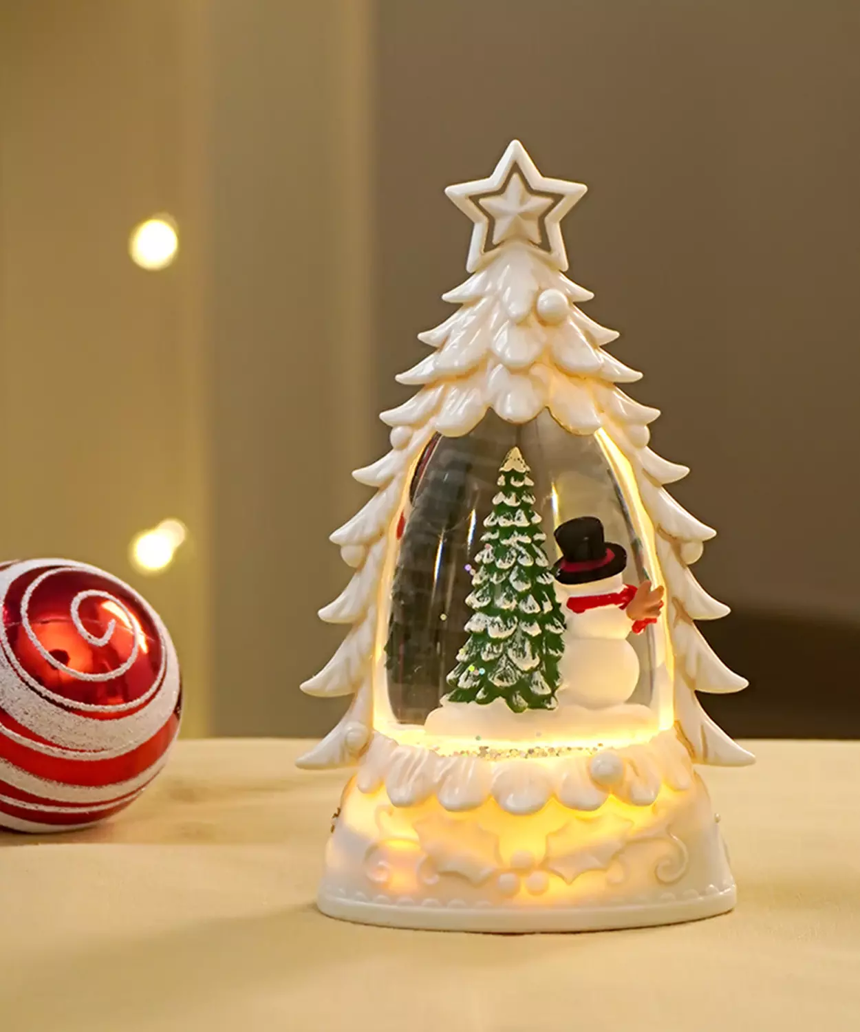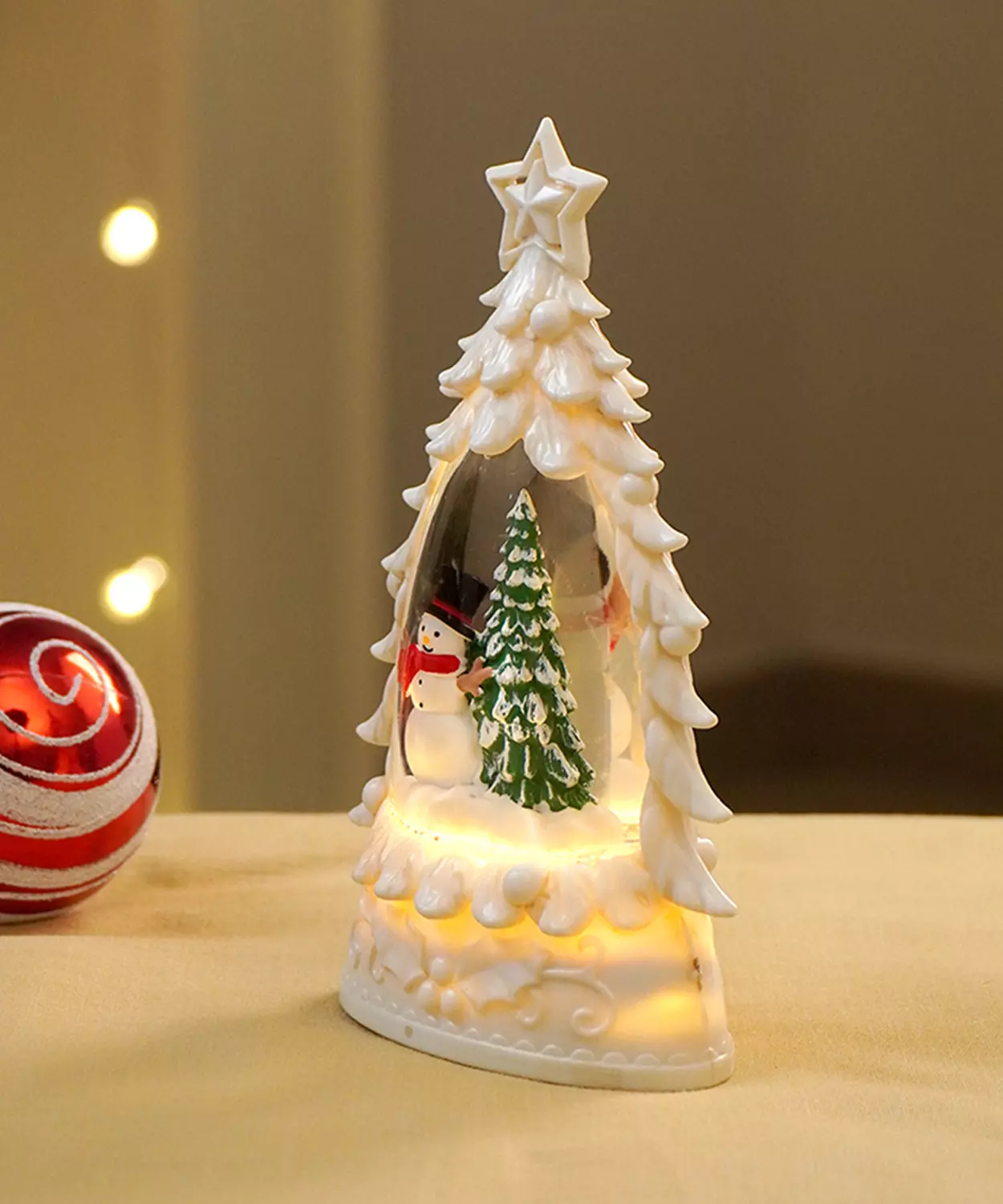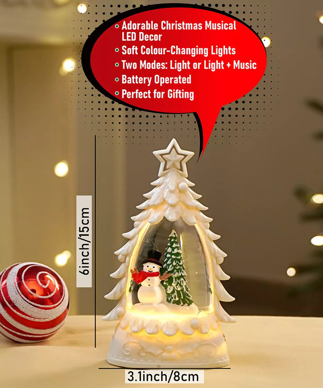 Mini Red Tree With Santa Sack Colorful Led Light Dome With Music Christmas Table Decor