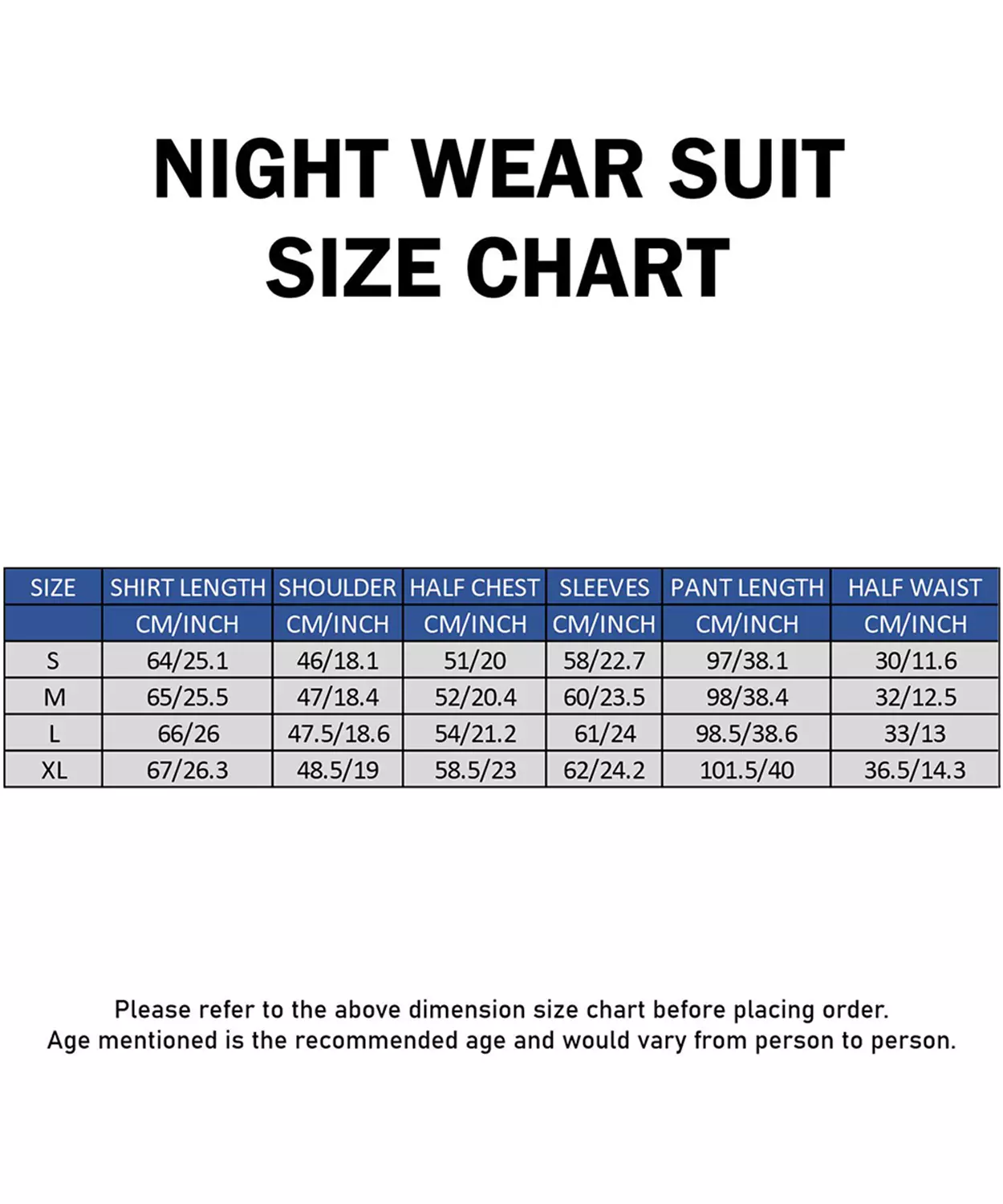 Available Sizes