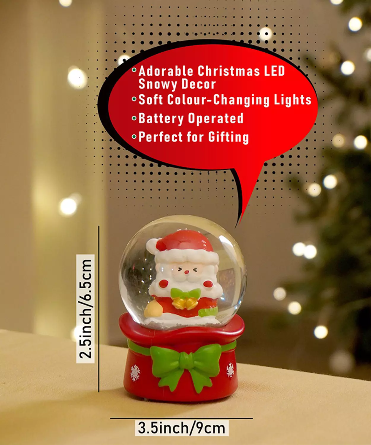 Mini Red Tree With Santa Sack Colorful Led Light Dome With Music Christmas Table Decor