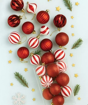 26 Pcs Broad Pointed Red White Themed Christmas Balls Tree Hanging, Xmas Decoration Set