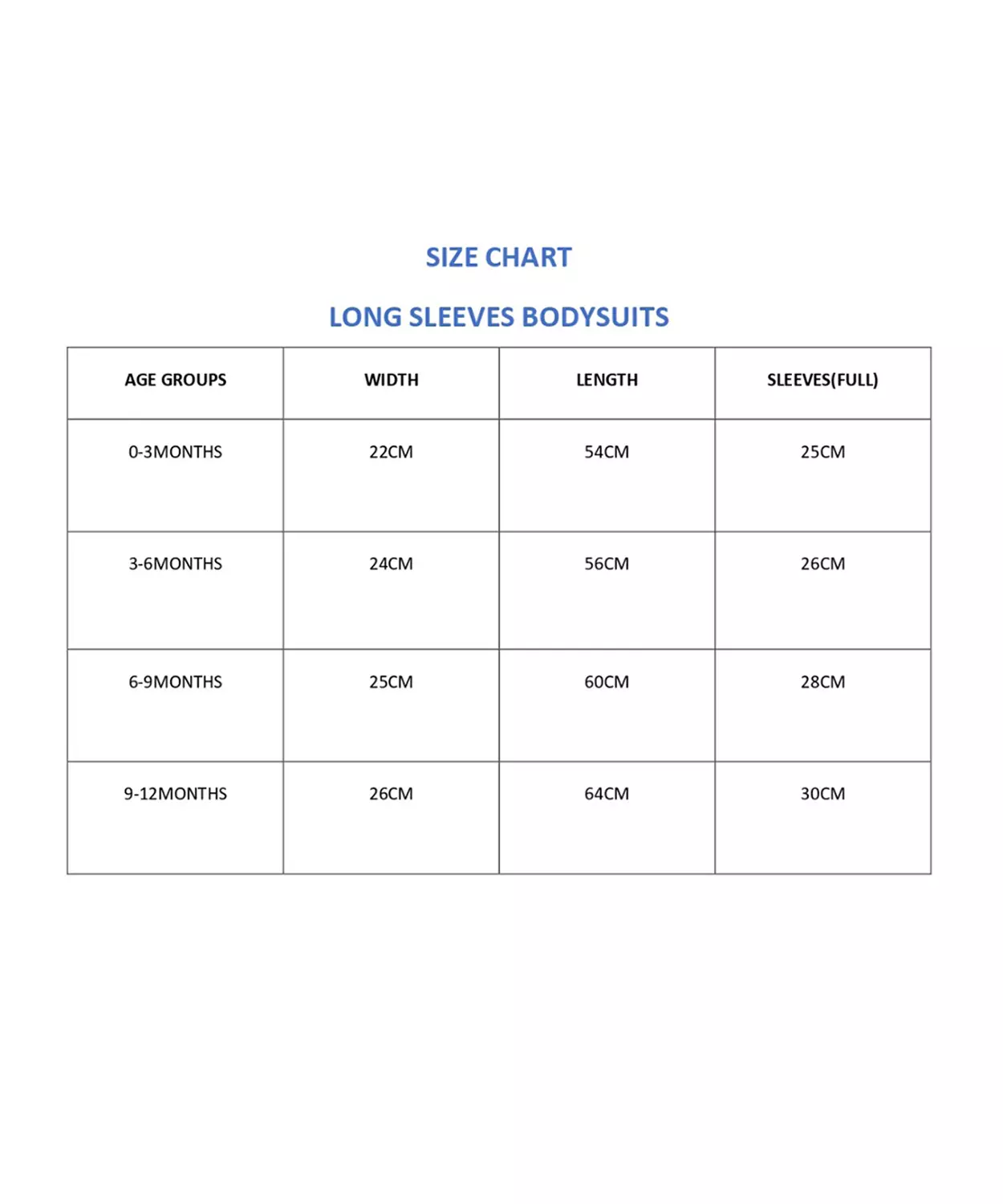 | BABY ONESIE SIZE CHART IN CM | ||||