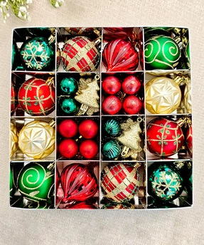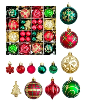 46Pcs Stripes & Flakes Red, Green Gold Christmas Tree Balls And Xmas Tree Decoration Set